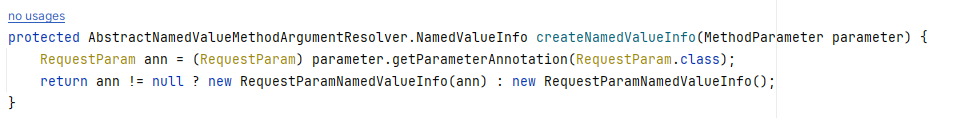 1. getNamedValueInfo() : createNameValueInfo() 메서드를 호출하여 NamedValueInfo(name, required, defaultValue) 를 가져온다.