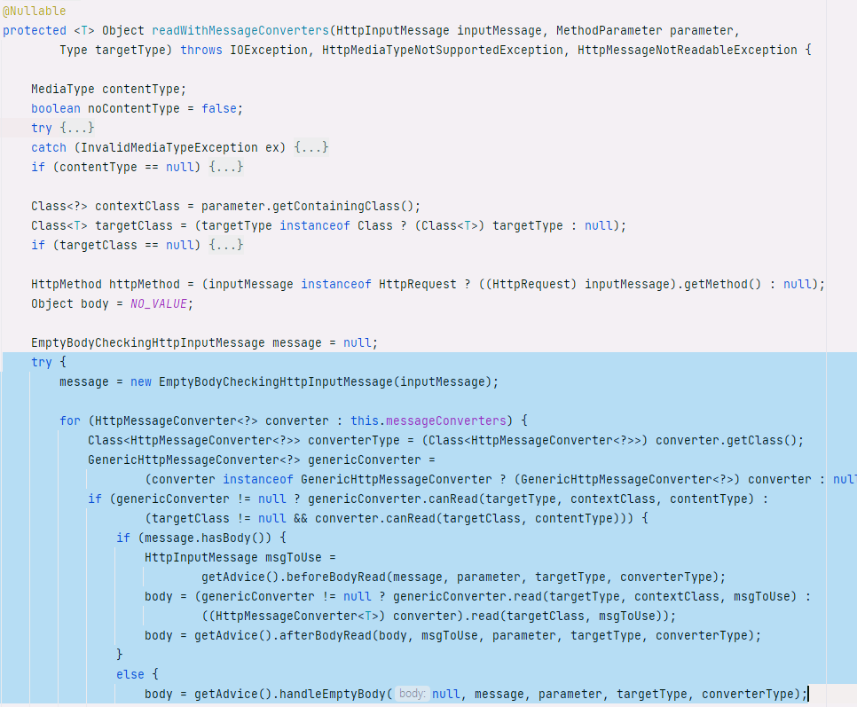 - beforeBodyRead: body를 읽어 객체로 변환되기 전에 호출됨