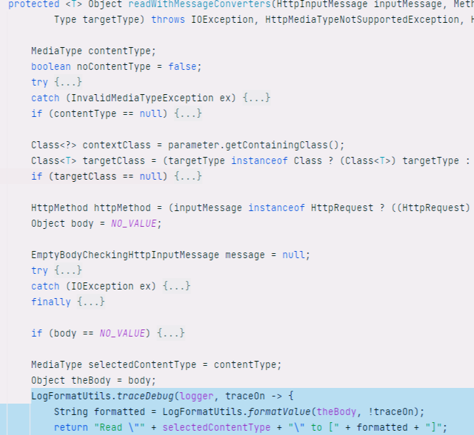 ▶ AbstractMessageConvertMethodArgumentResolver Class 의 readWithMessageConvert 메서드에서 출력한다.