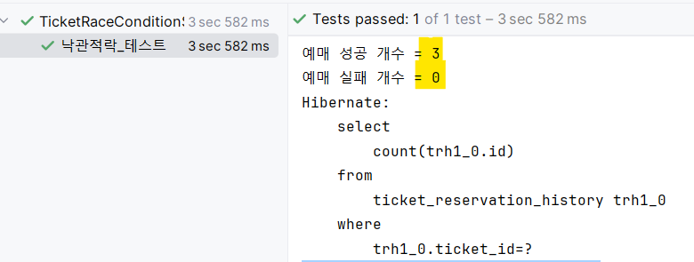 Version 충돌이 잦아, 수행 시간이 오래걸려 티켓 개수와 스레드 개수를 3개로 줄였다.
