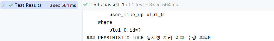 ▶ 1. Method Level 에 @Lock(LockModeType.PESSIMISTIC_WRITE) 을 적용한다. JPA 환경에서는 다음과 같이 선언해주면 MySQL에서 기본 옵션으로 제공하는 Pessimistic Lock을 사용할 수 있게 된다.