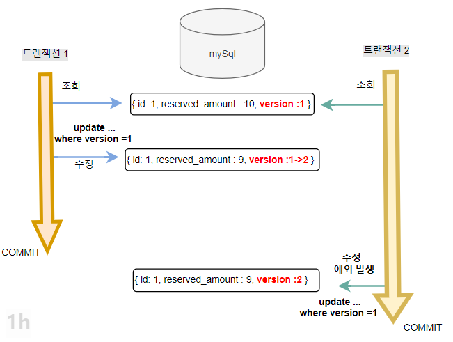 ⓛ 버전 충돌로 인해 실패할 경우, 직접 예외를 처리하여 재시도하는 로직을 구현해야 한다.