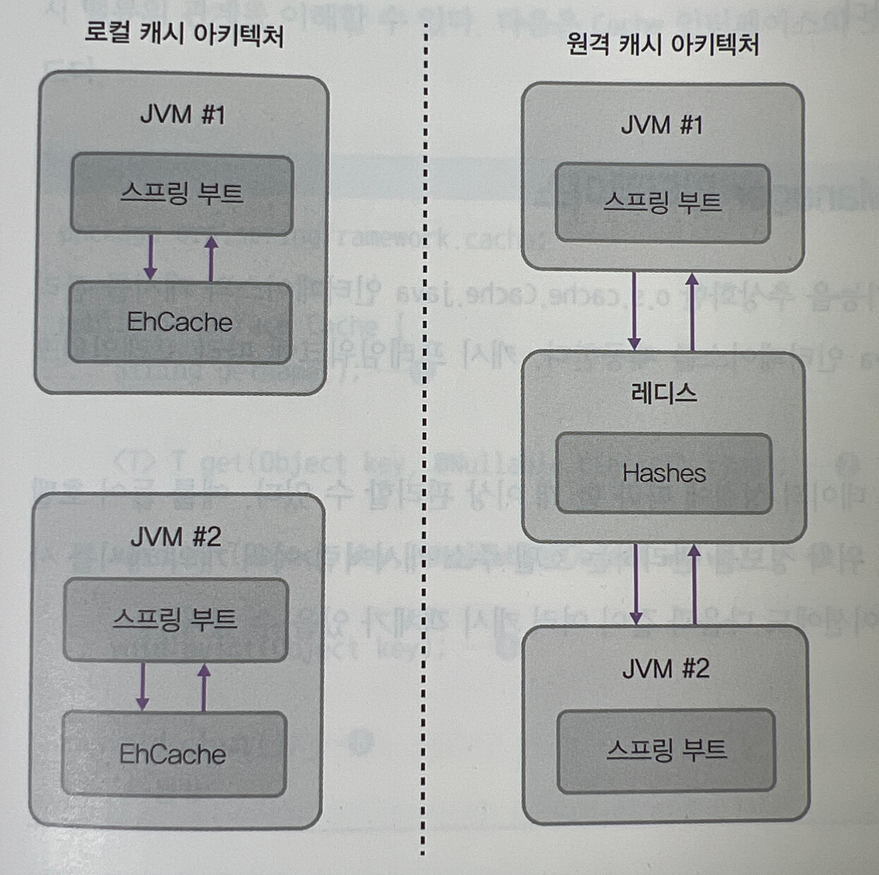 | 저장소 | 개별 시스템 또는 서비스 내에 존재하는 캐시 메모리 | 여러 시스템이 공유하는 중앙화된 캐시 메모리 |
