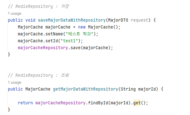 -결과 : “major”라는 캐시 항목에 key는 majorId, value에는 조회 결과 데이터로 캐시된다.