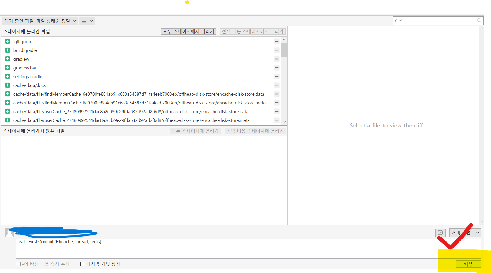 1. 스테이지에 올리지 않은 파일: