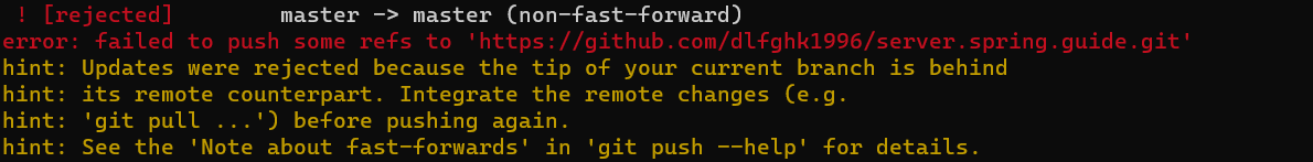 ☆ 해결방법 1: git pull 명령어로 원격 repository를 pull 받는다. (fetch, merge 진행된다.)