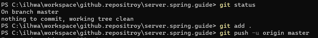 git status 로 상태 확인.
