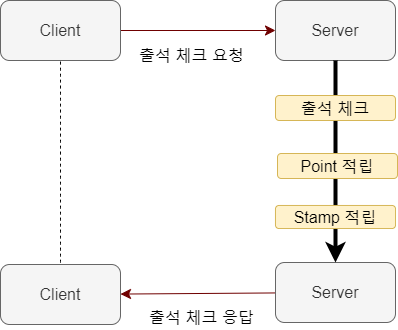 ▶단계 / 회차별 출석체크 시 포인트와 스탬프를 제공하는 서비스 ◀