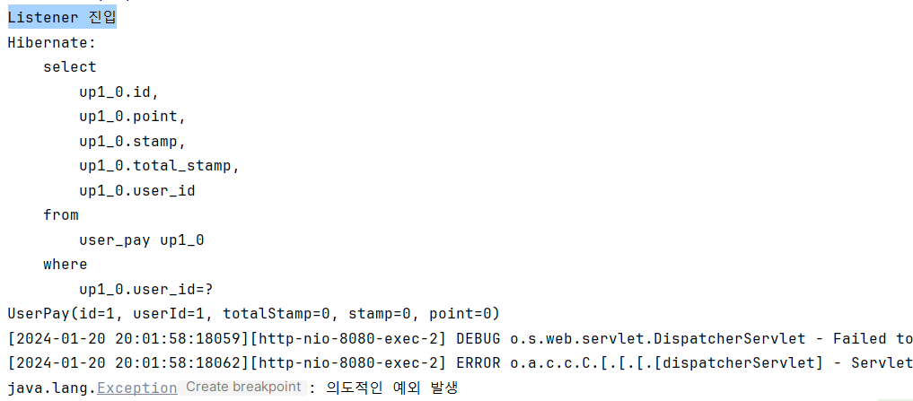 핵심 로직 서비스 단에서 어찌어찌한 이유로 예외가 발생할 경우에, 리스너는 어떻게 반응 할까?!