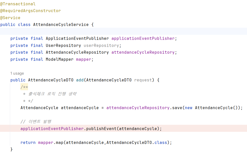 applicationEventPublisher.publishEvent(attendanceCycle);