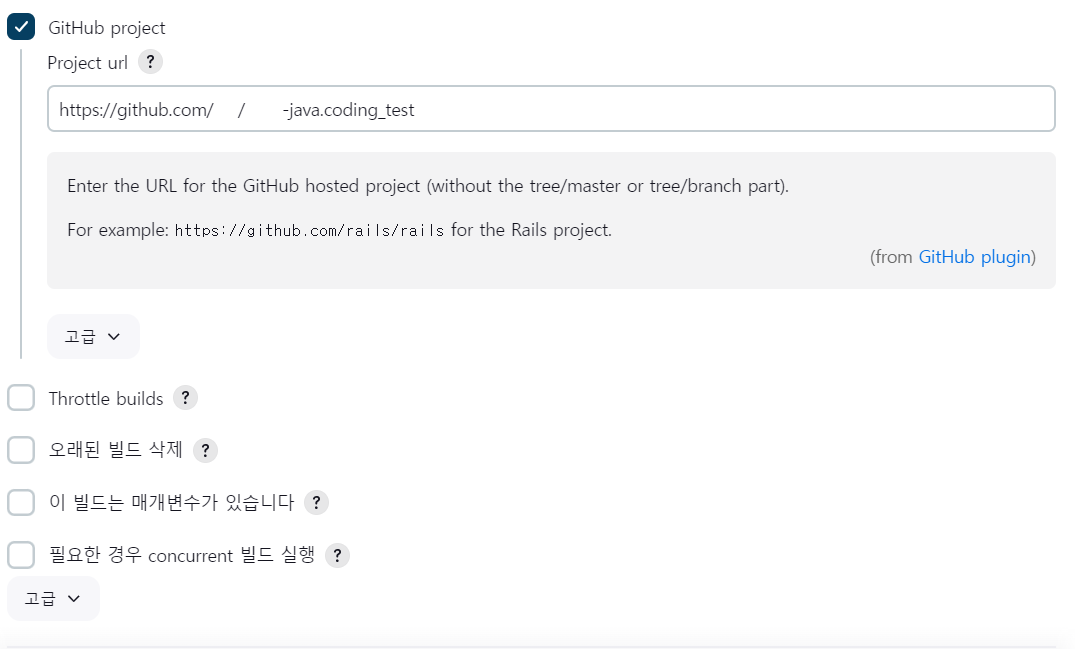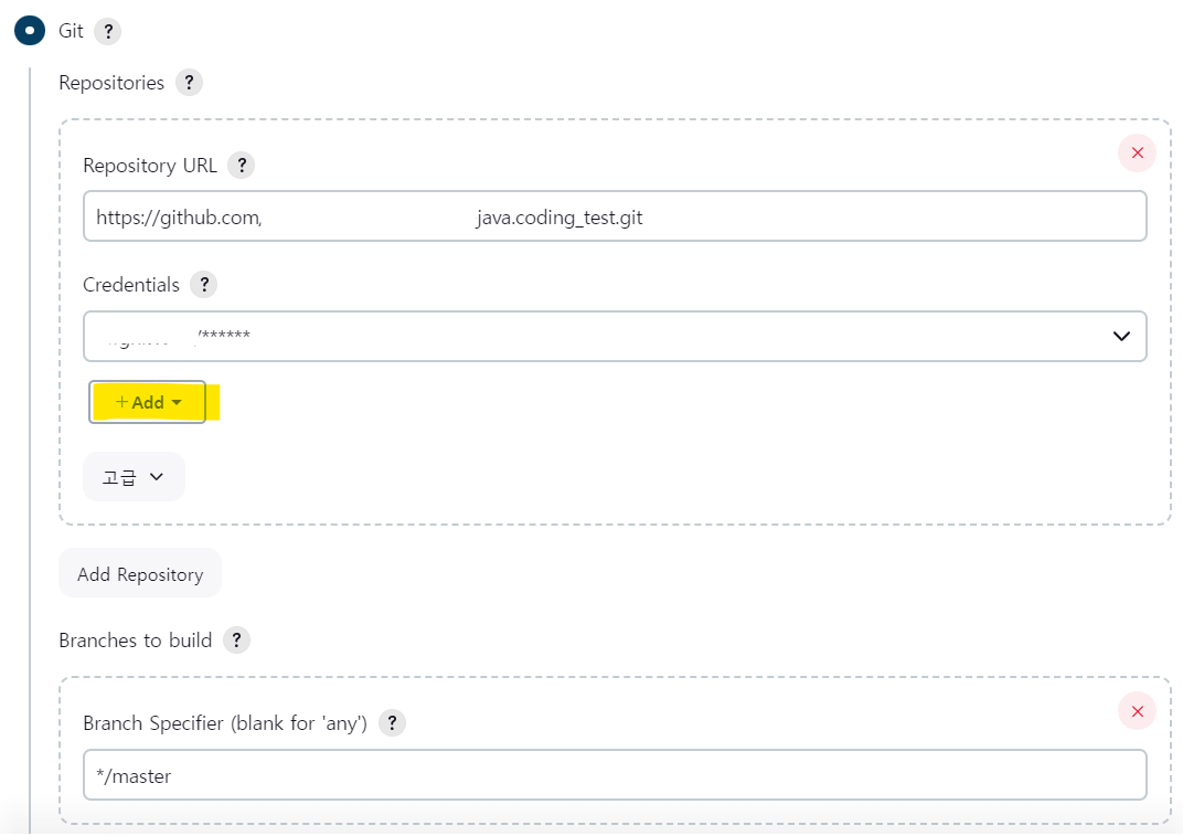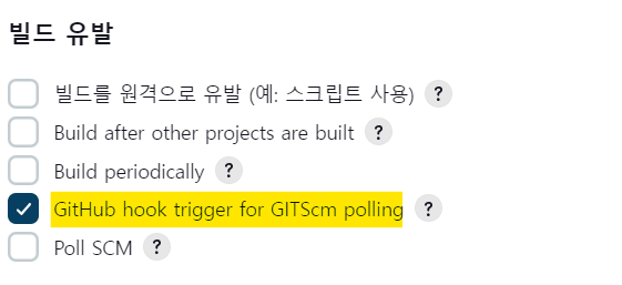 - branch의 경우 master push시에 젠킨스에서 빌드를 진행하도록 master 를 선택했다.