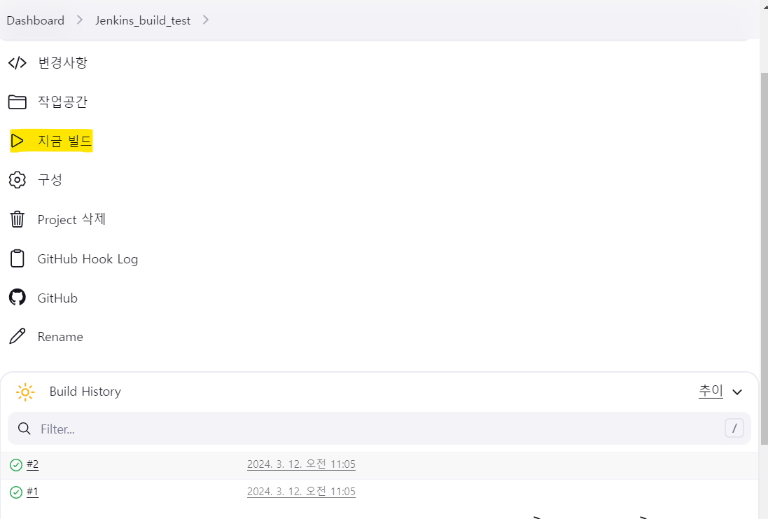 :빌드를 실행하여 소스코드가 잘 받아와지는지, 스크립트 명령은 잘 실행되는지 확인한다.