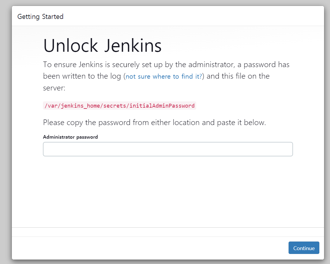 /var/jenkins_home/secrets/initialAdminPassword 경로에 가면 젠킨스 비밀번호를 확인 할 수있다.