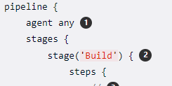 - 파이프라인의 최상위 레벨은 pipeline { } 블록 이어야 한다.