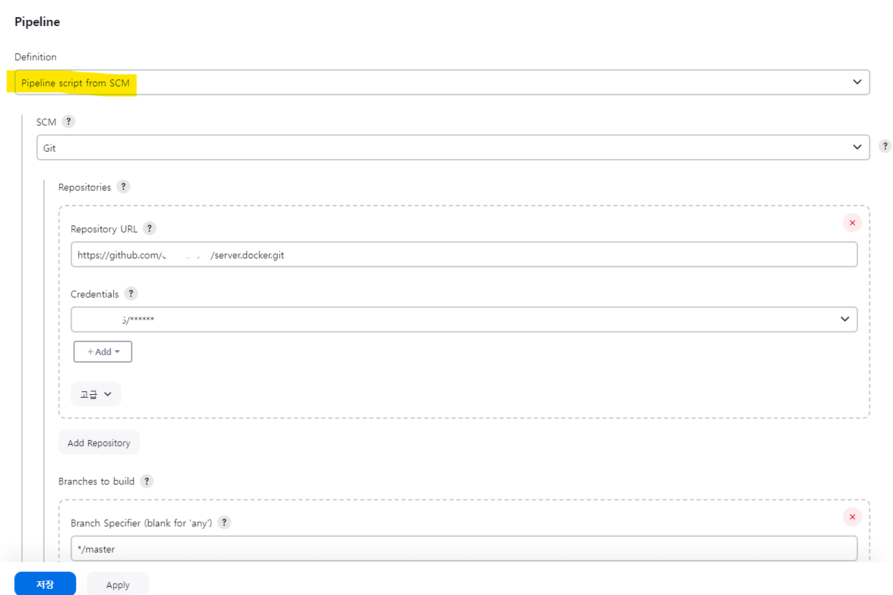 - Pipeline script from SCM : 프로젝트 내부에서 파일로 관리하는 Pipeline 스크립트
