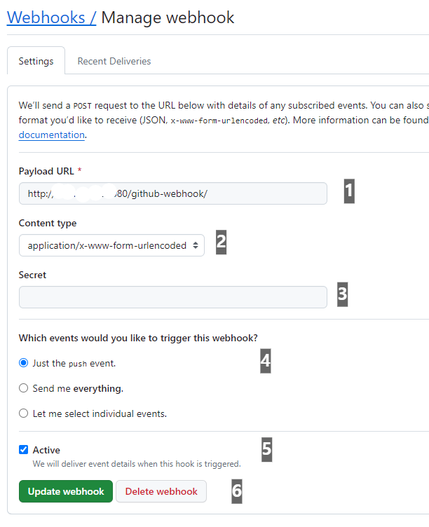 : 비밀번호를 사용하면, 수신요청을 Github 에서 발생하는 요청으로만 제한 할 수 있다. (참고)