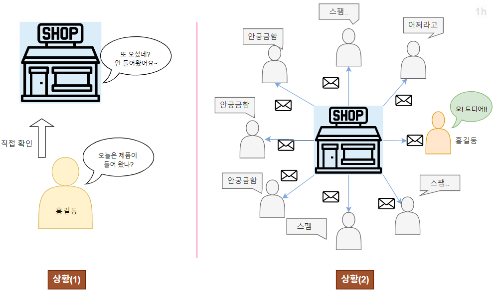 상황 1: 길동이는 제품이 입고 됬는지 확인하기위해 매번 가게에 방문한다.