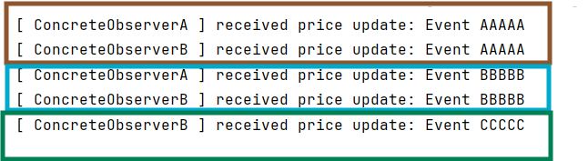 System.out.println("[ ConcreteObserverB ] received price update: " + eventTxt);